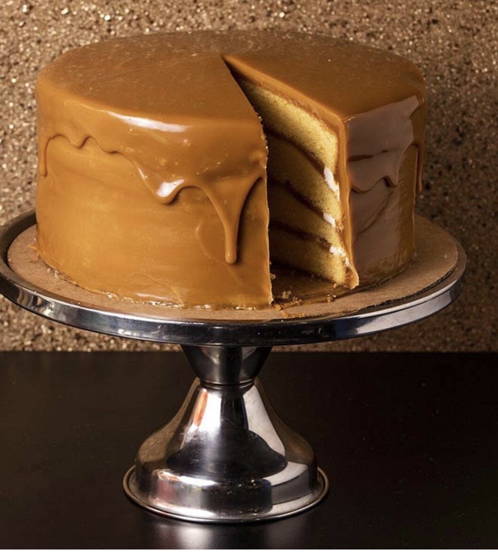 Super moist buttery vanilla cake topped with caramel icing made from scratch.