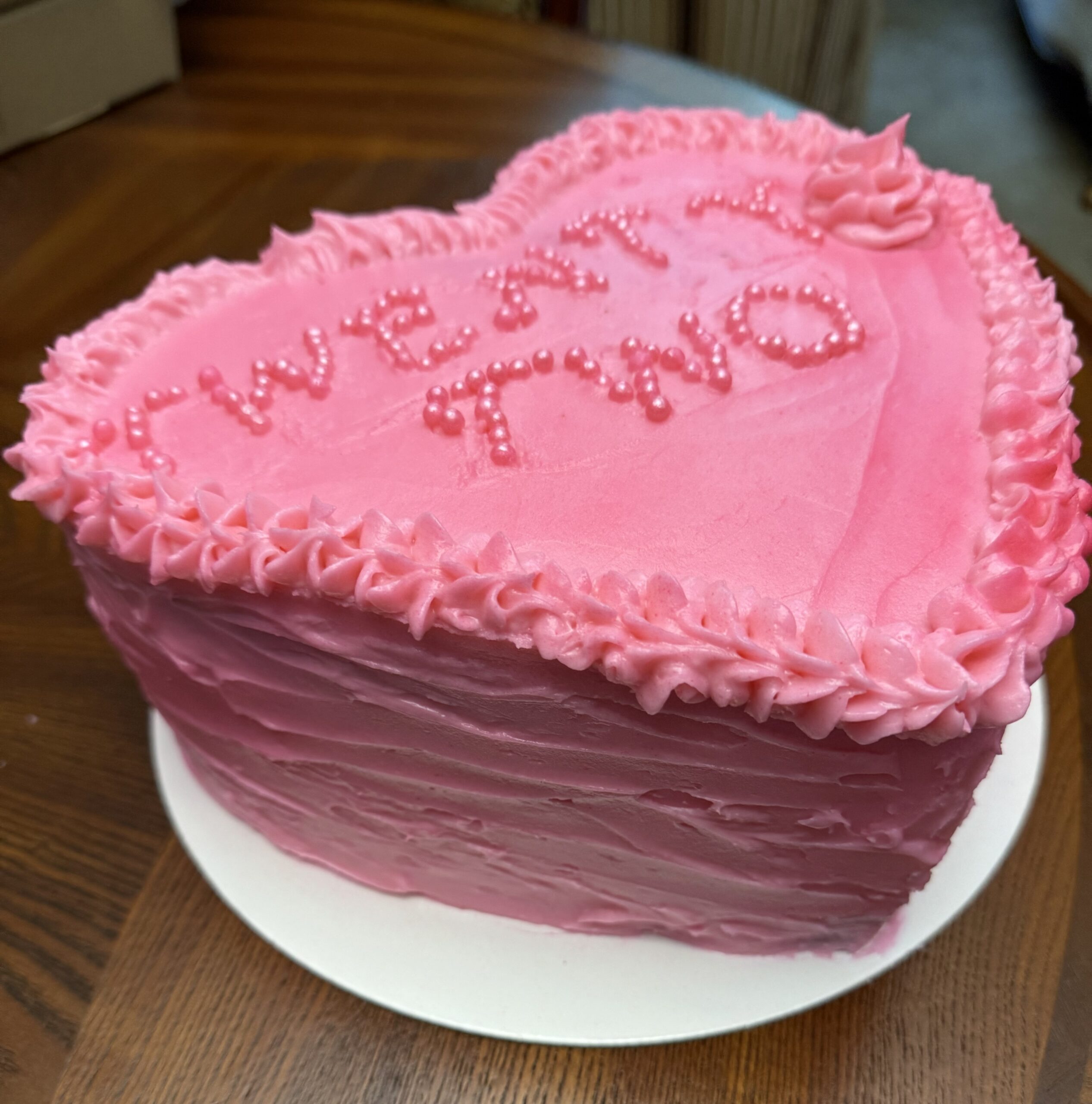 This two layer heart shaped cake is perfect for any occasion. Maybe you’re celebrating Valentine’s Day or maybe any day is special and you want to make it YOUR Valentine’s Day, this would be the perfect cake.